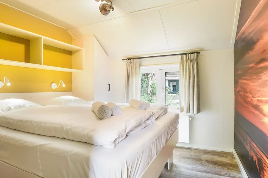 Daarnaast zijn er twee aparte slaapkamers: één met een comfortabel tweepersoonsbed en één met een stapelbed (ideaal voor de kinderen). De badkamer is onlangs vernieuwd en beschikt over een moderne inloopdouche. Buiten geniet je van je eigen terras met meubilair, omgeven door de rust van het park. Met faciliteiten zoals gratis wifi en een centrale ligging tussen bos en duin, biedt deze cottage alles wat je nodig hebt voor een authentieke en ontspannen vakantie op Terschelling.