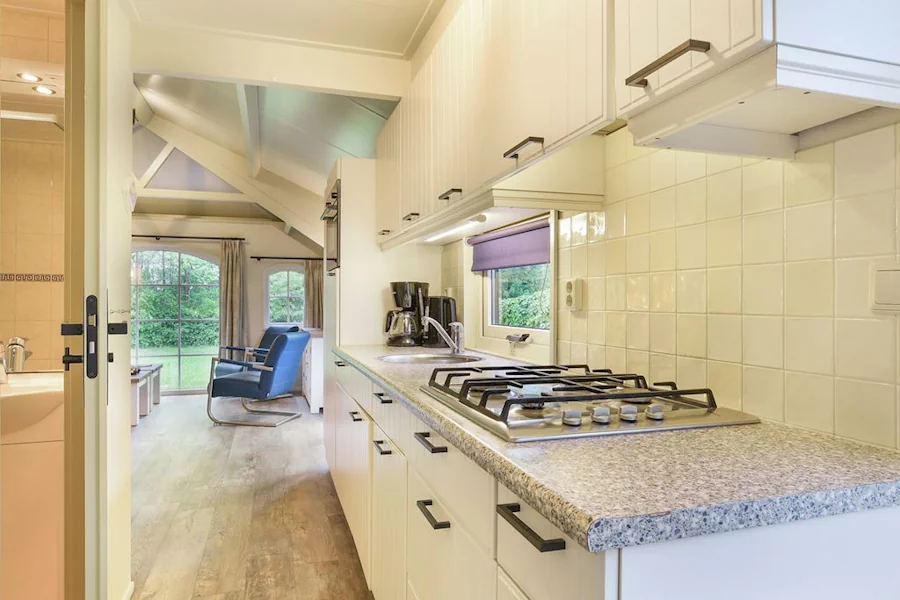 De 4-6-persoons cottage (type 4-6D) op Landal Schuttersbos is met circa 45 m² een compacte maar uiterst sfeervolle woning. De cottage is gelijkvloers en beschikt over een gezellige woonkamer met zithoek en een open keuken die van alle gemakken is voorzien, zoals een vaatwasser en combimagnetron. Een bijzonder detail is de authentieke 2-persoonsbedstee in de woonkamer, wat zorgt voor een knusse en unieke slaapervaring.